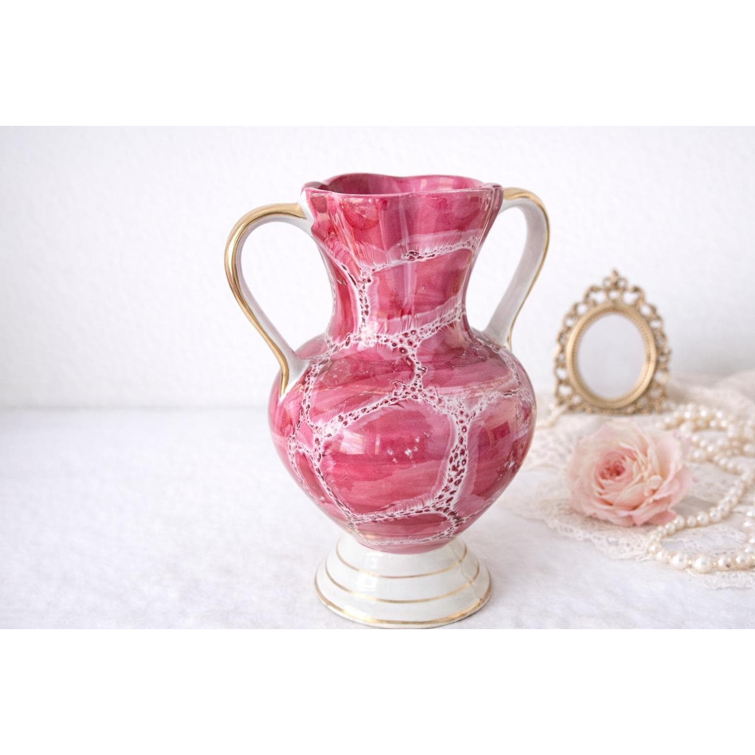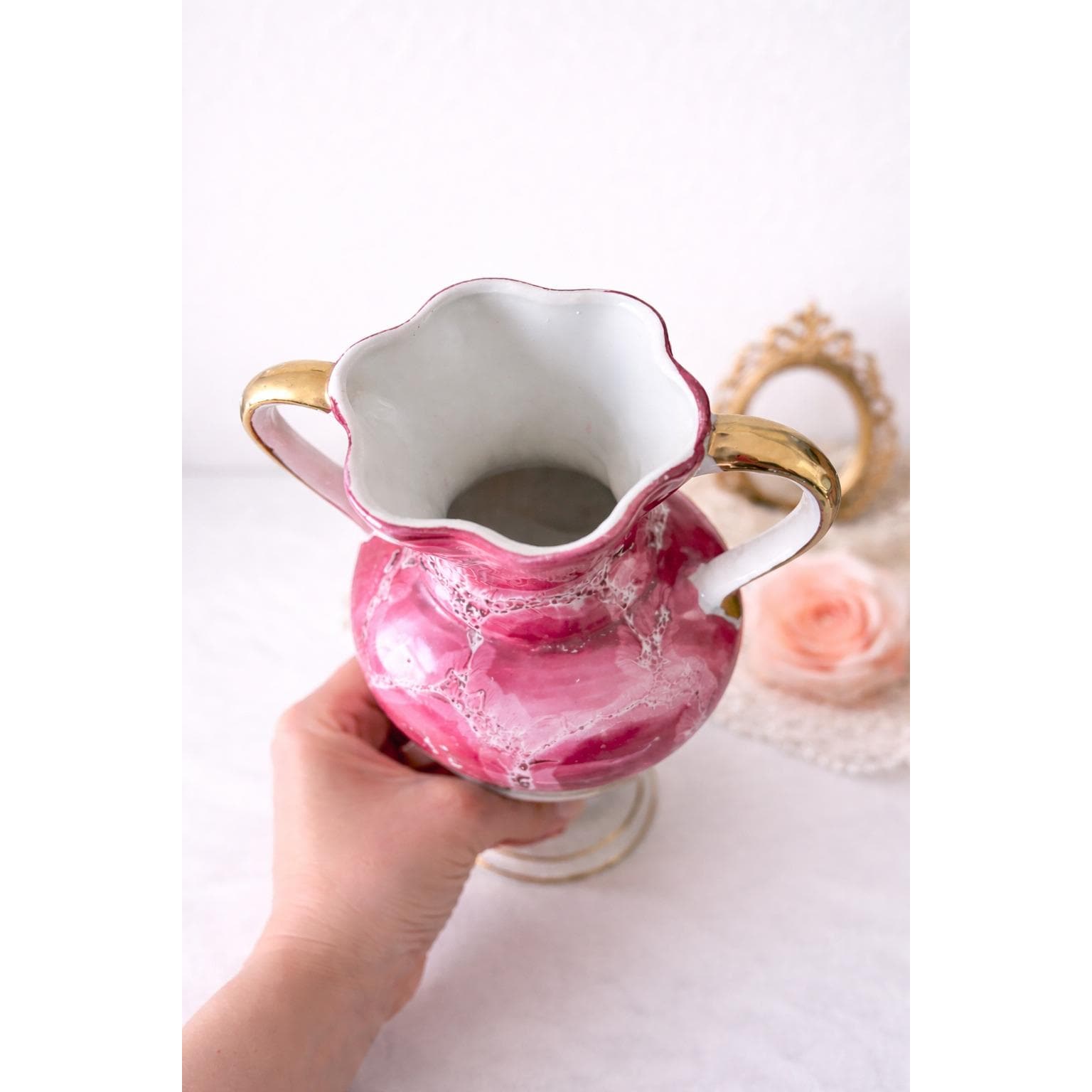 Vintage Italian Handpainted Pink and Gold Vase – Rococo Style with Windmill Scene