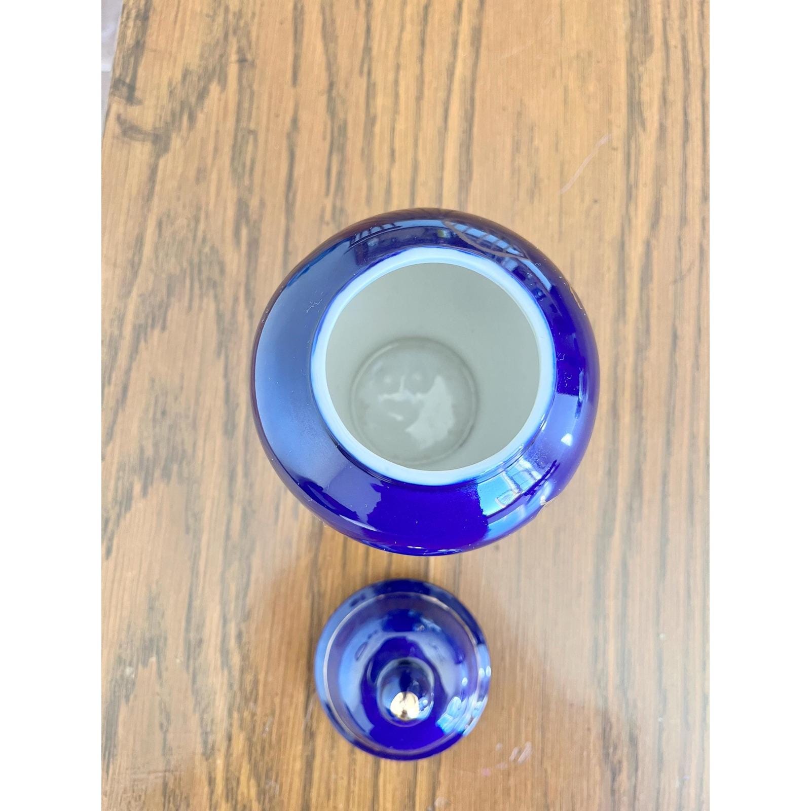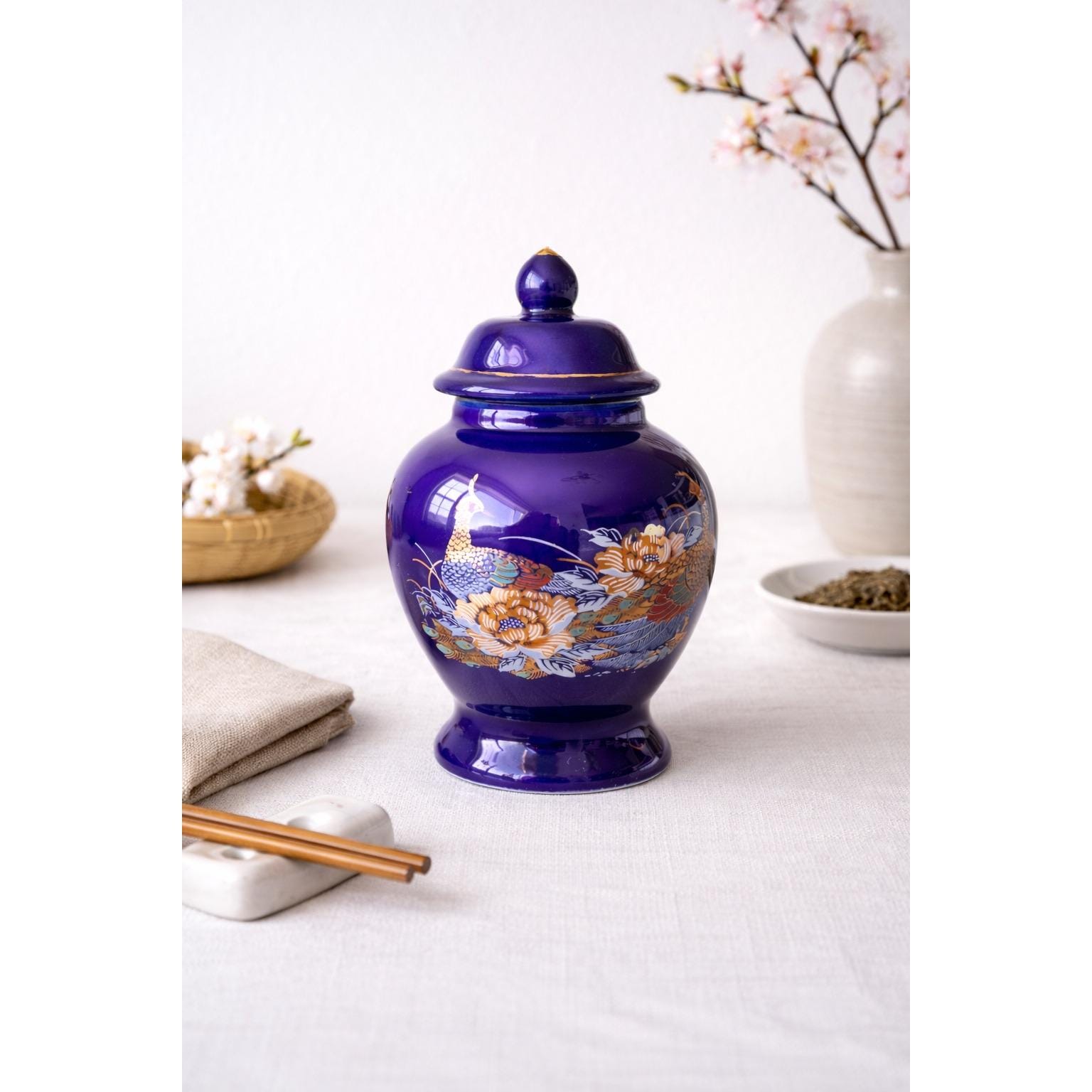 Mini Cobalt Blue Lidded Ginger Jar with Peacock Pattern – Made in Taiwan