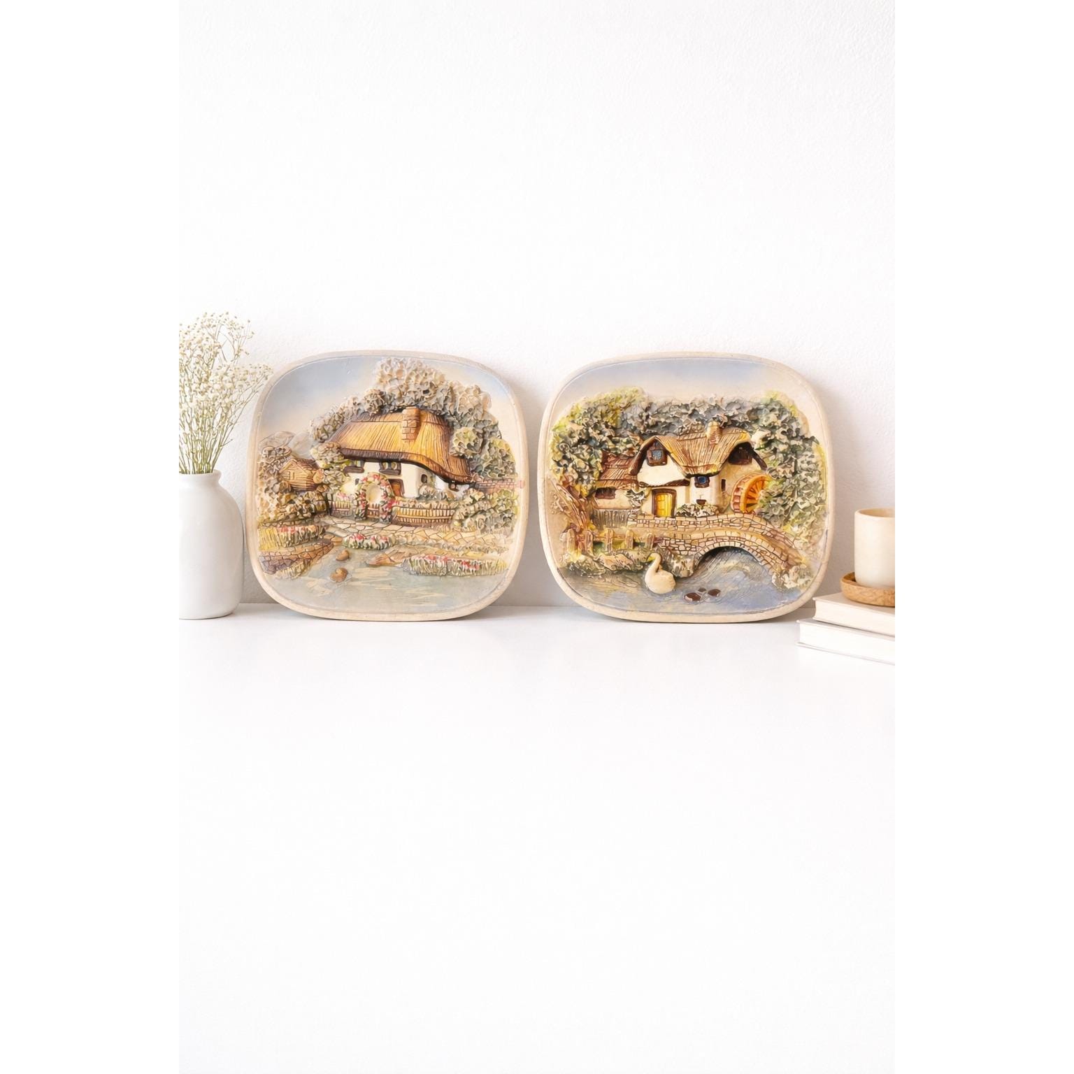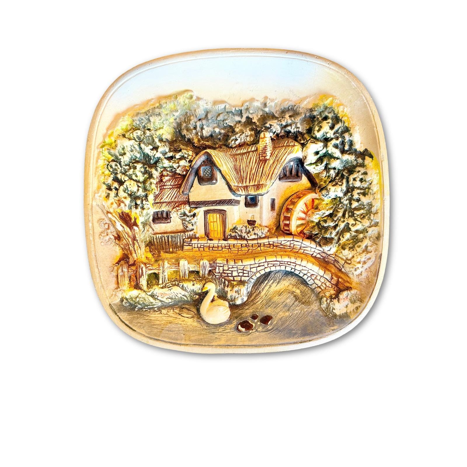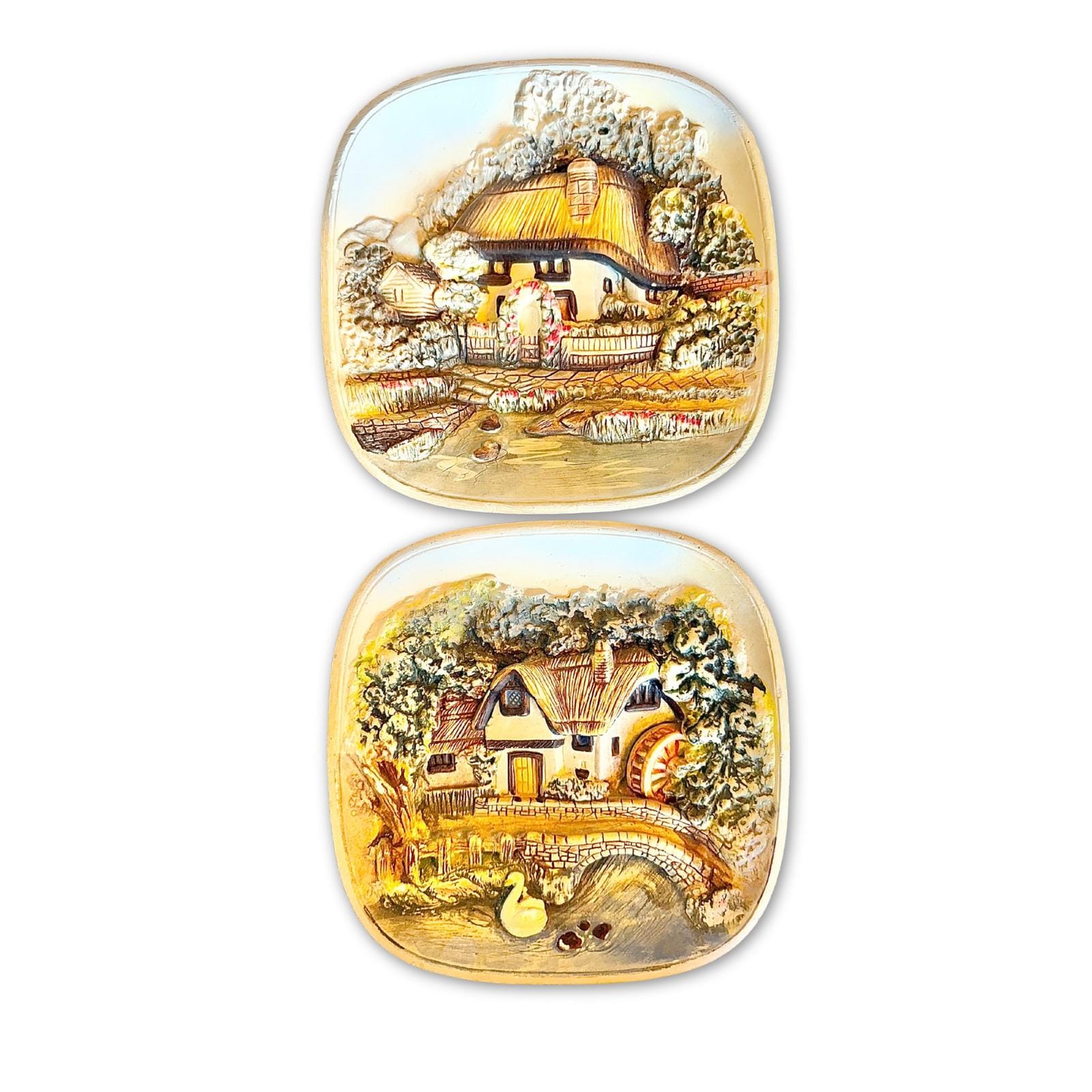 Each plaque is a unique hand painted scene of a classic English cottage surrounded by landscaping and water. These are the ultimate addition to your cottagecore decor collection!