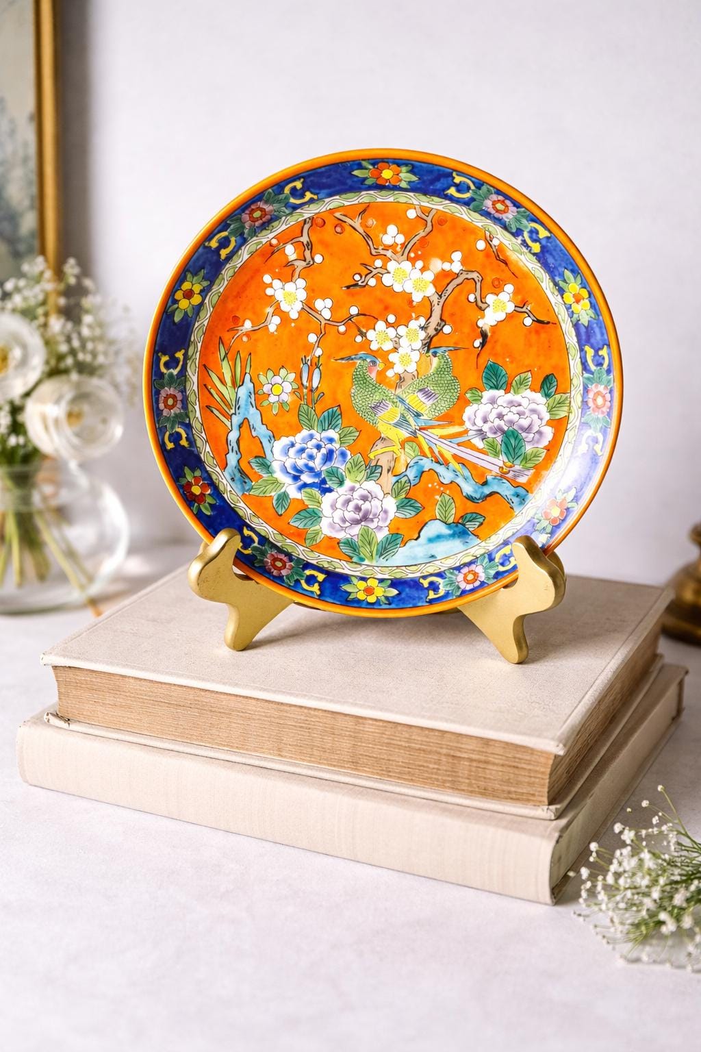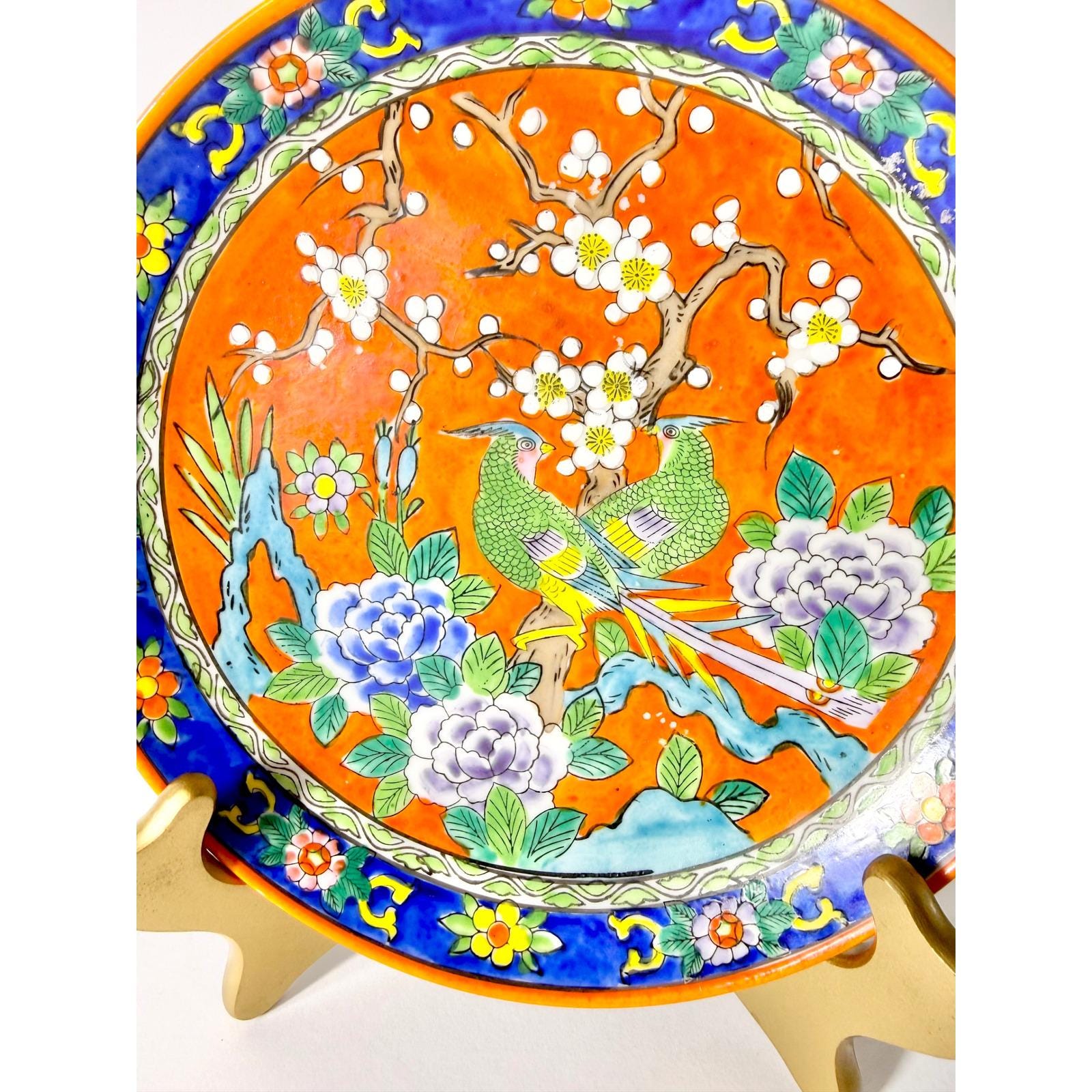 Keywords: oriental plate, asian decor, collectible plate, handcrafted, ornate design, wall art, display plate, floral motif, avian art, table centerpiece, traditional japan, unique gift, fine china