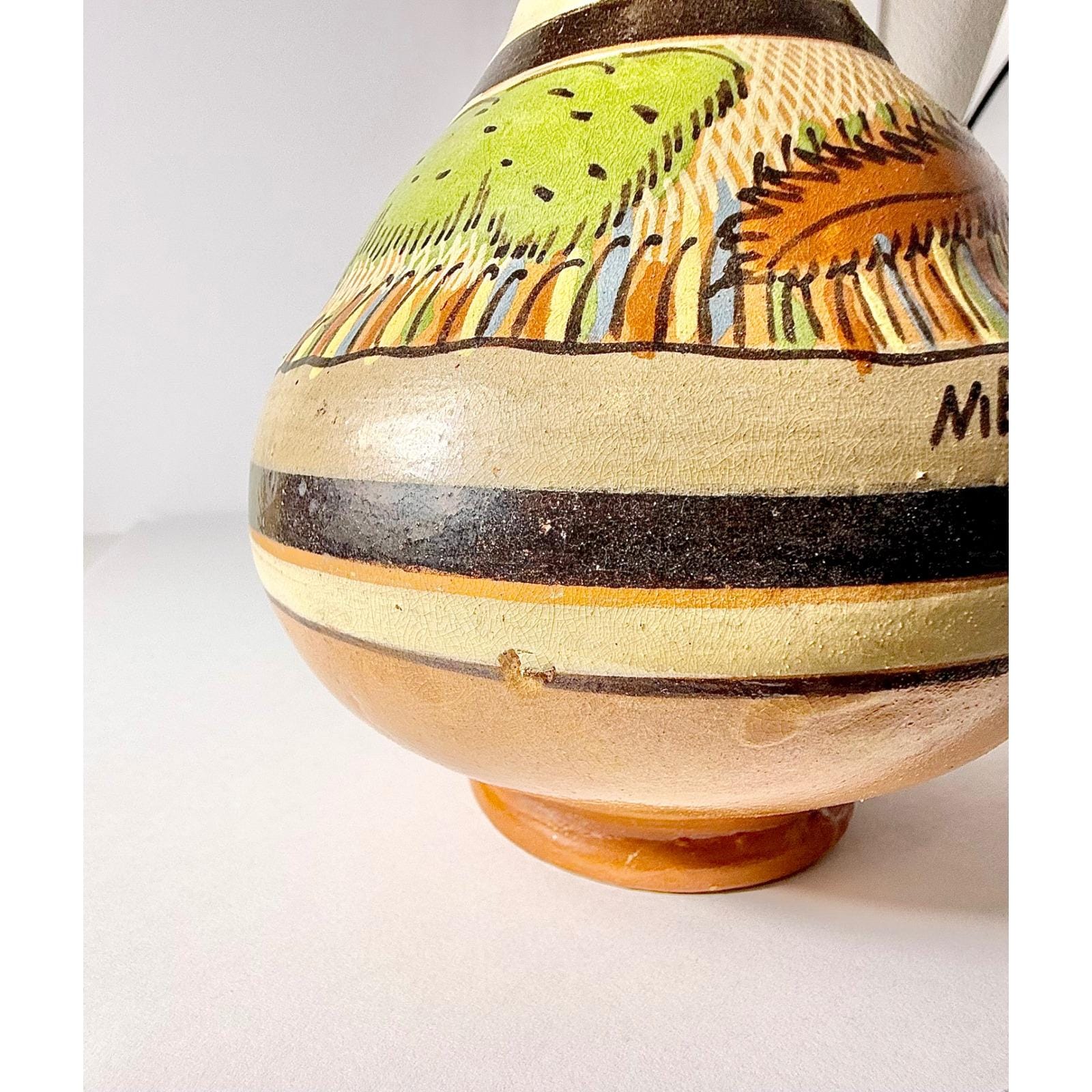 Mexican Hand Painted Petatillo Pottery Folk Art Water Jug