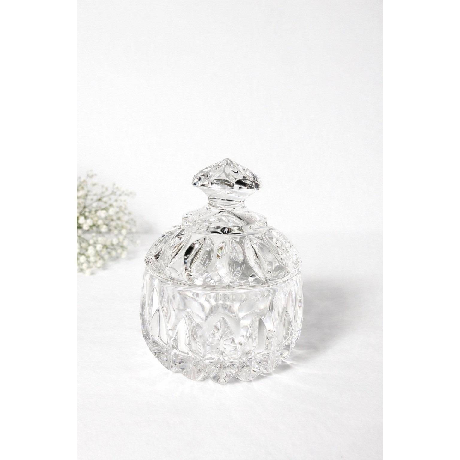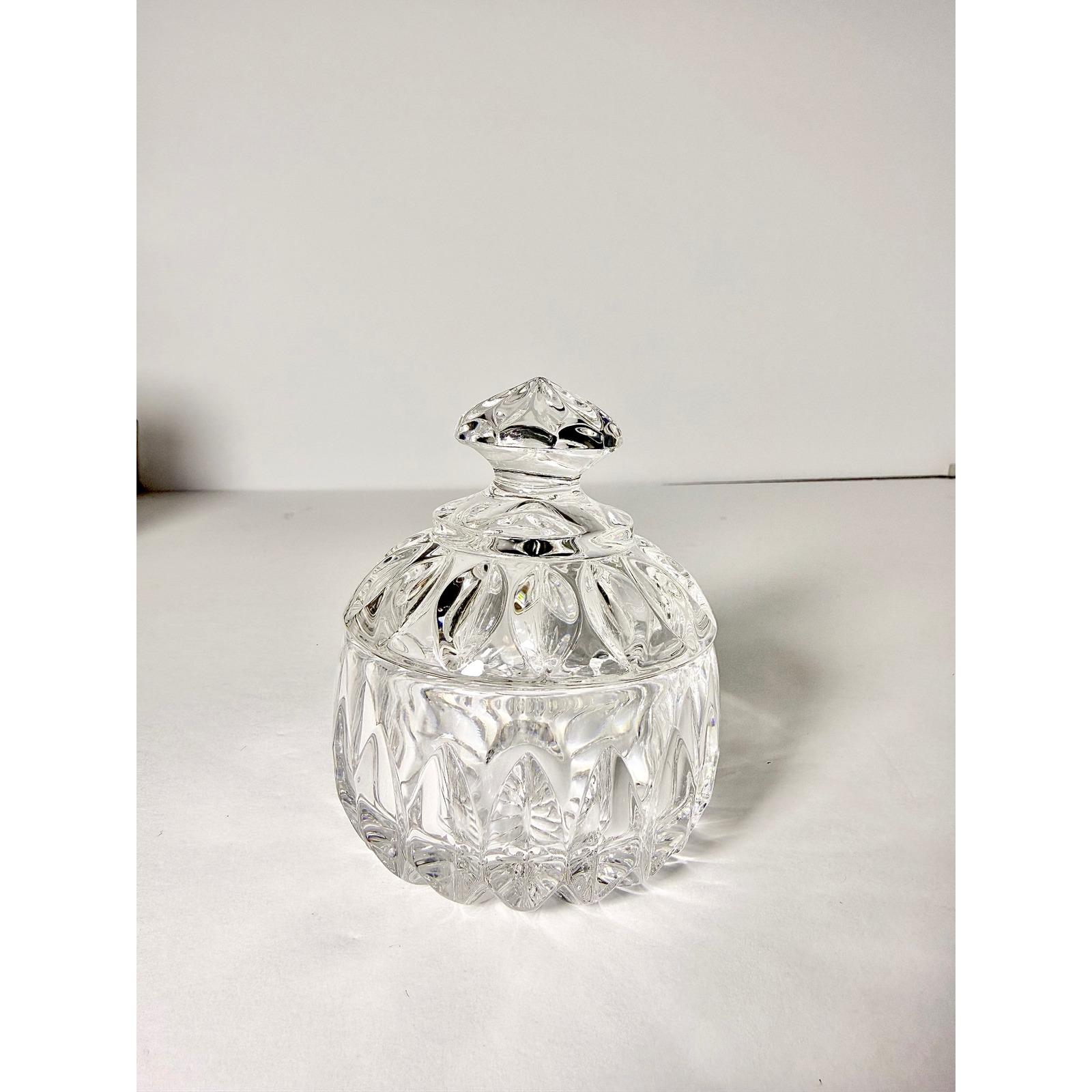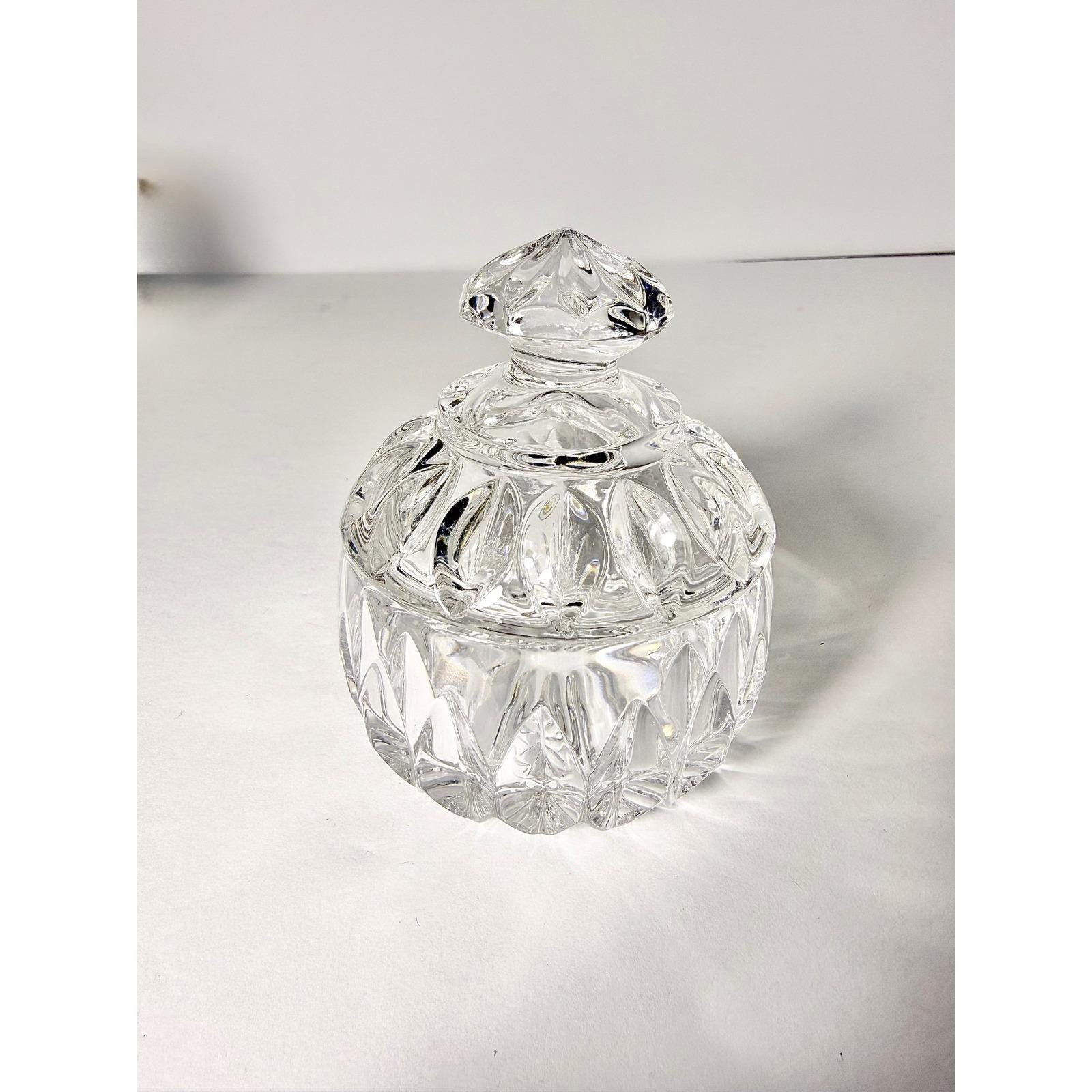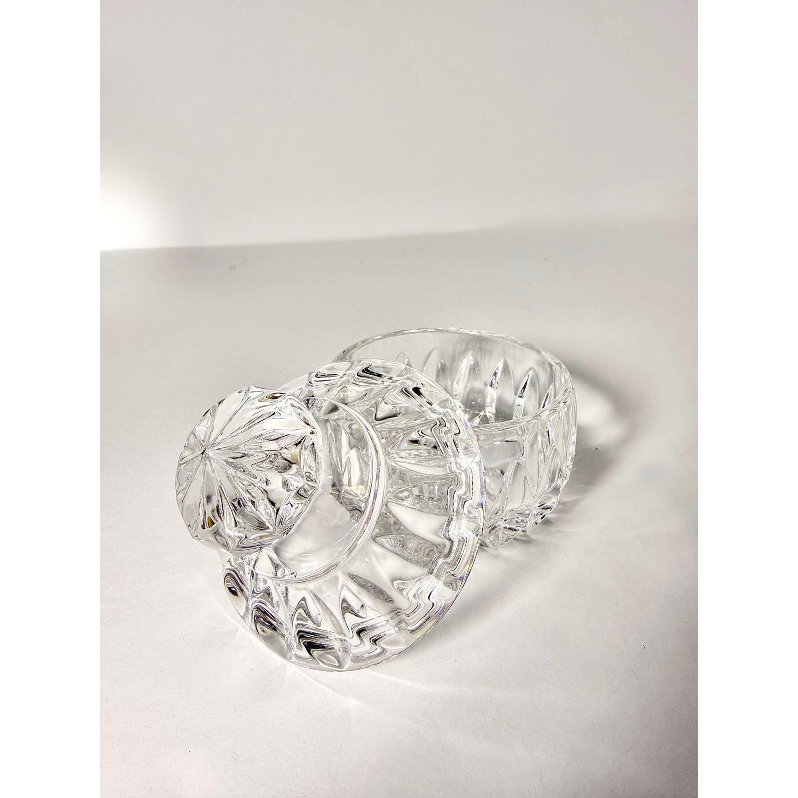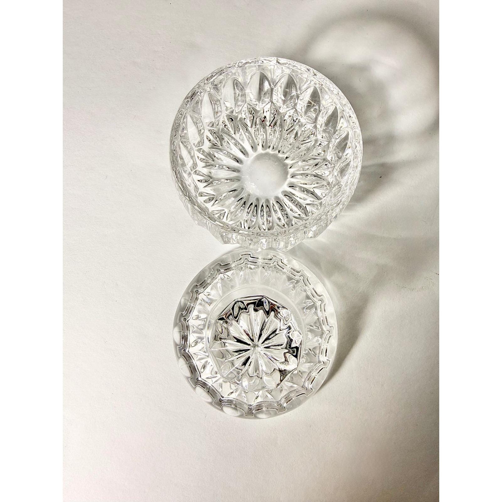This elegant sugar bowl in the Althea pattern by Gorham is crafted from beautifully cut lead crystal and includes a matching lid. The intricate faceted design reflects light beautifully, giving it a refined, timeless presence.