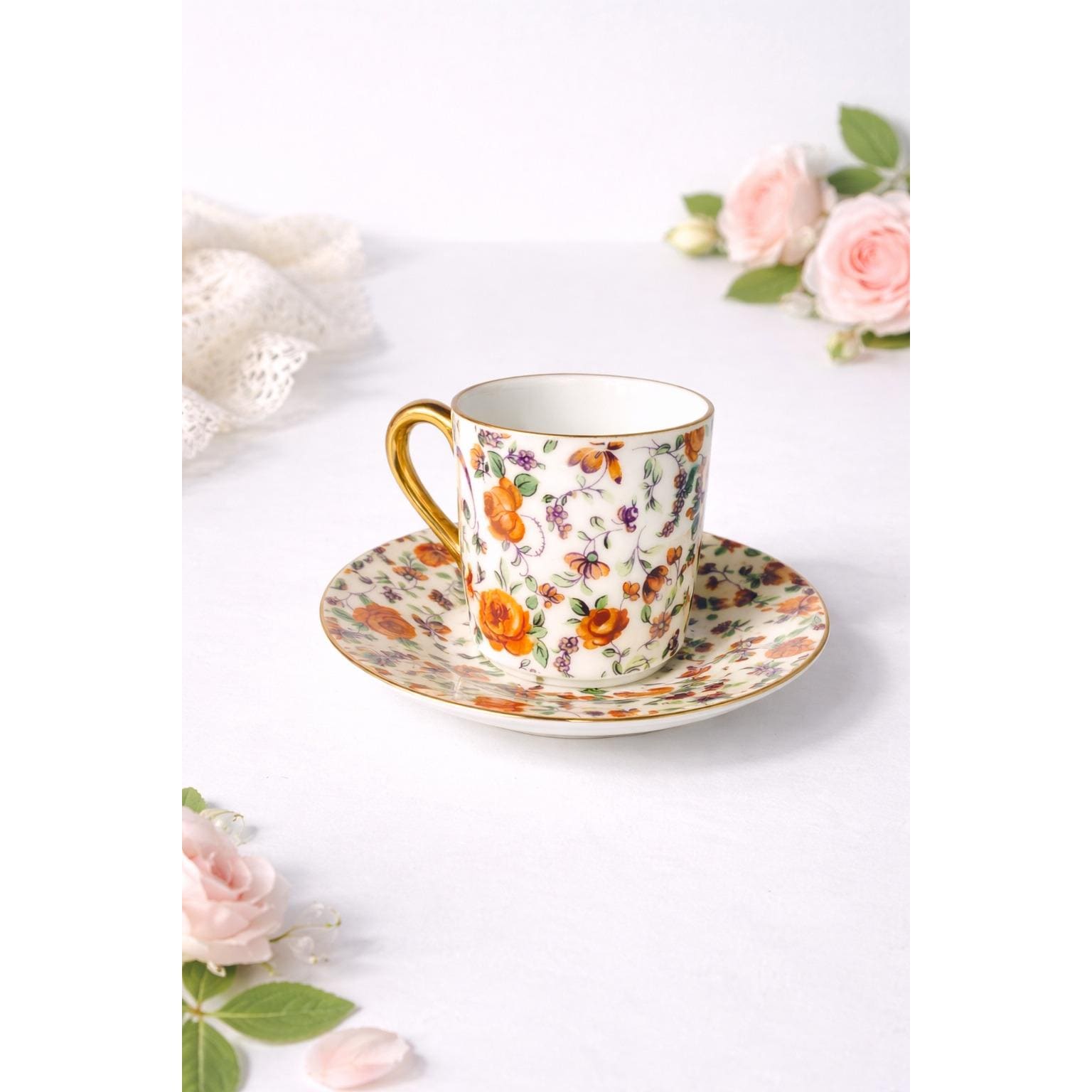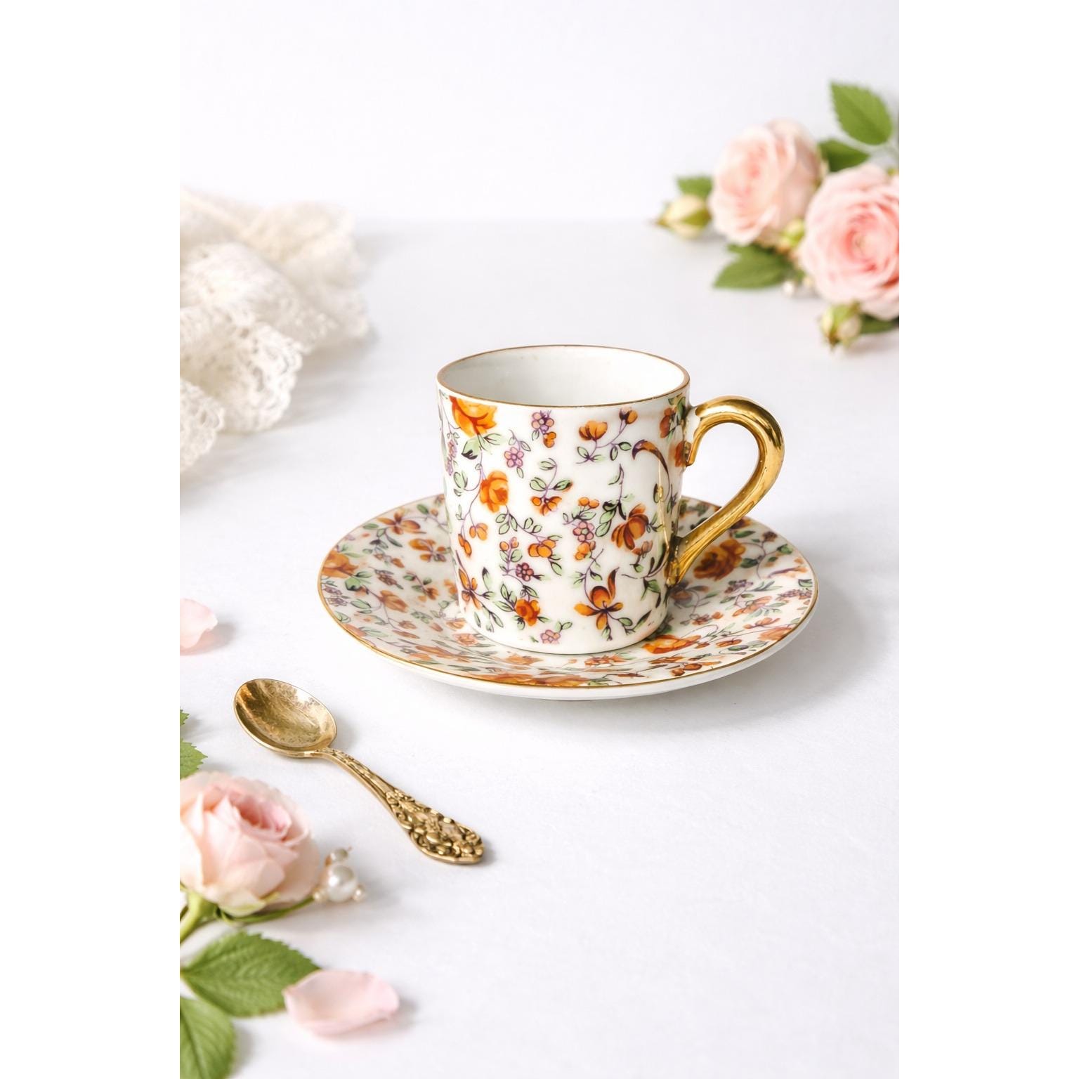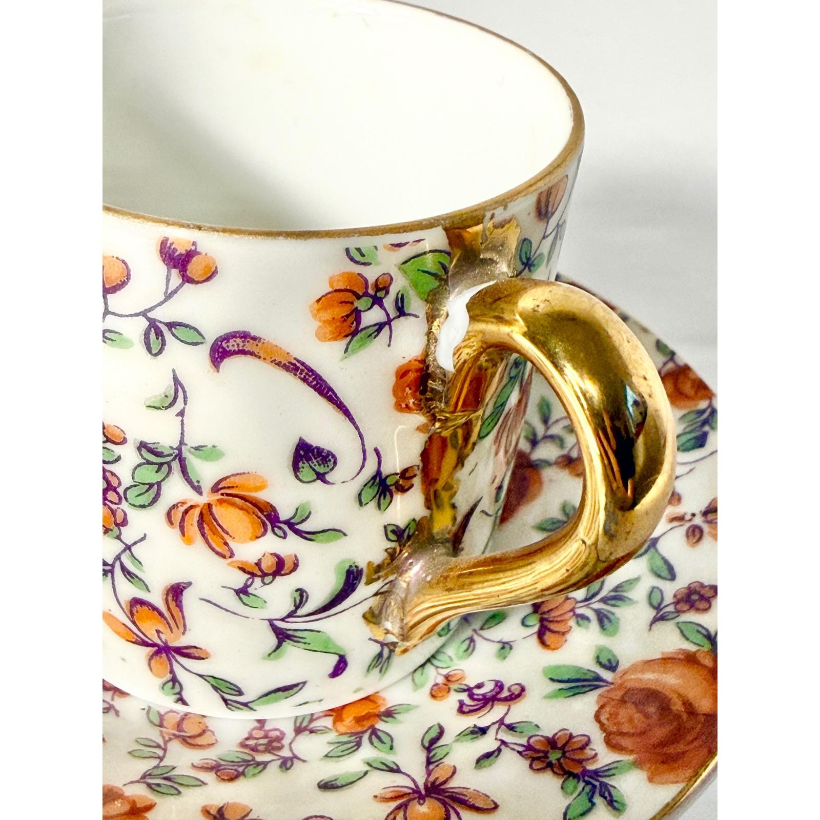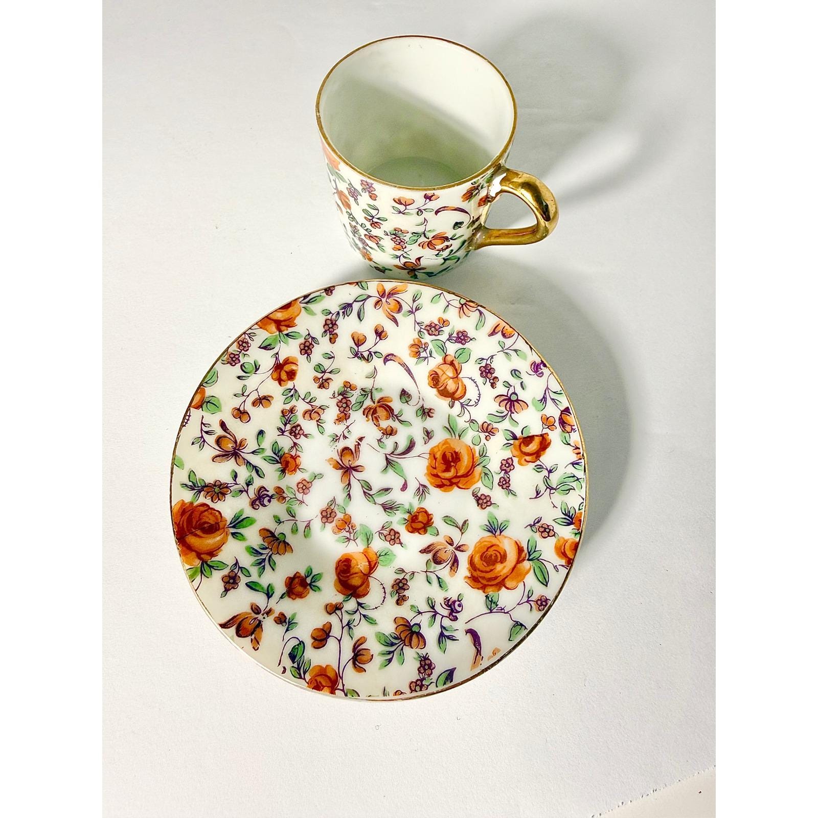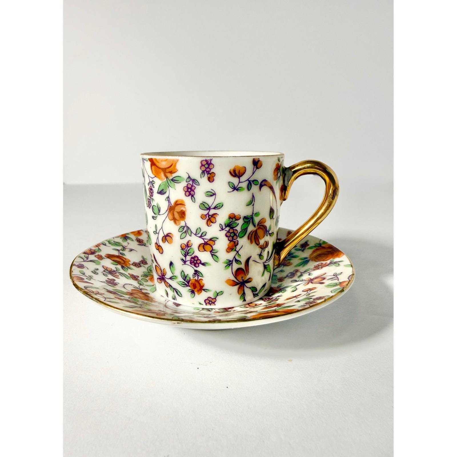 Perfect for espresso service, tea time, or display in a china cabinet or styled shelf. A charming addition to any vintage porcelain or chintz collection.