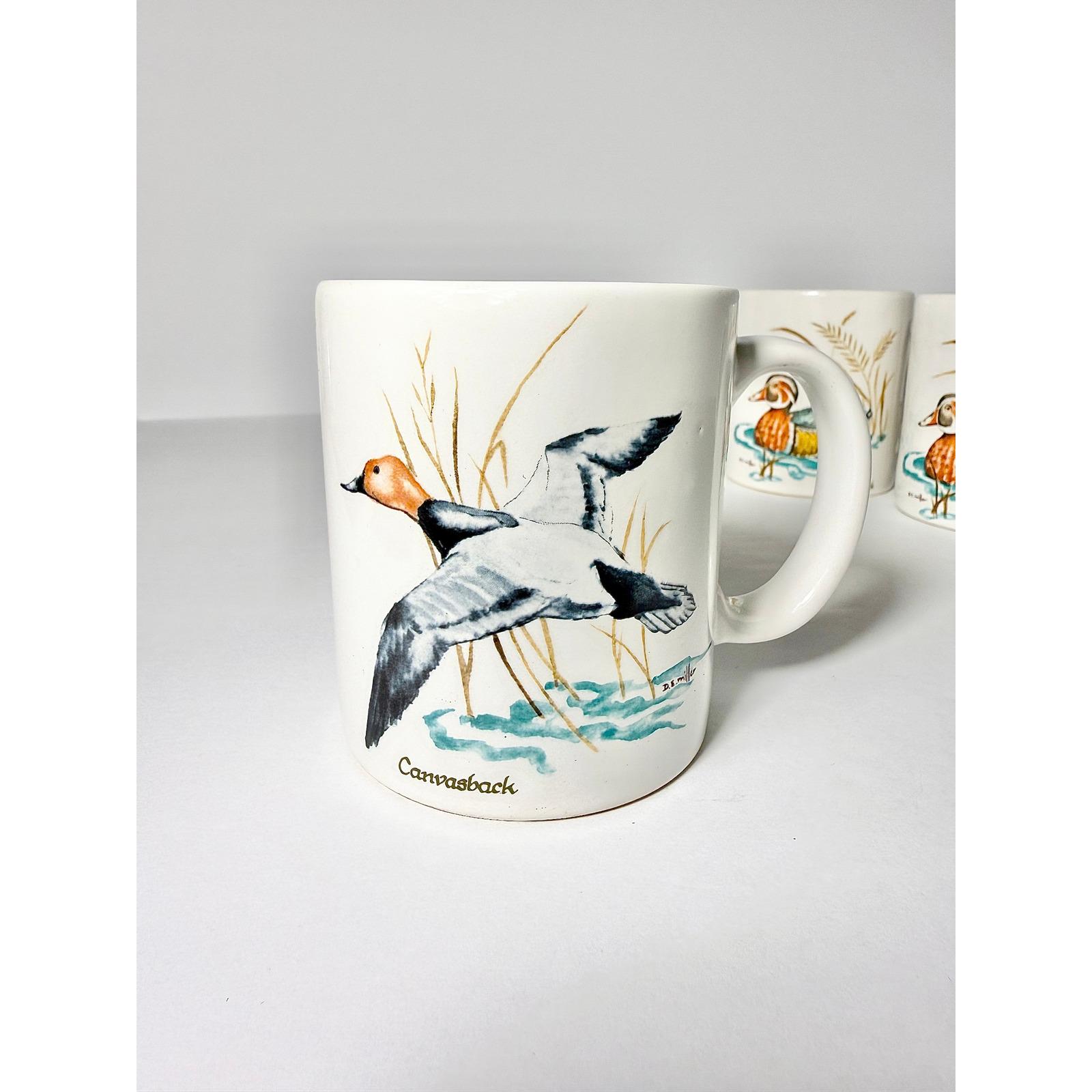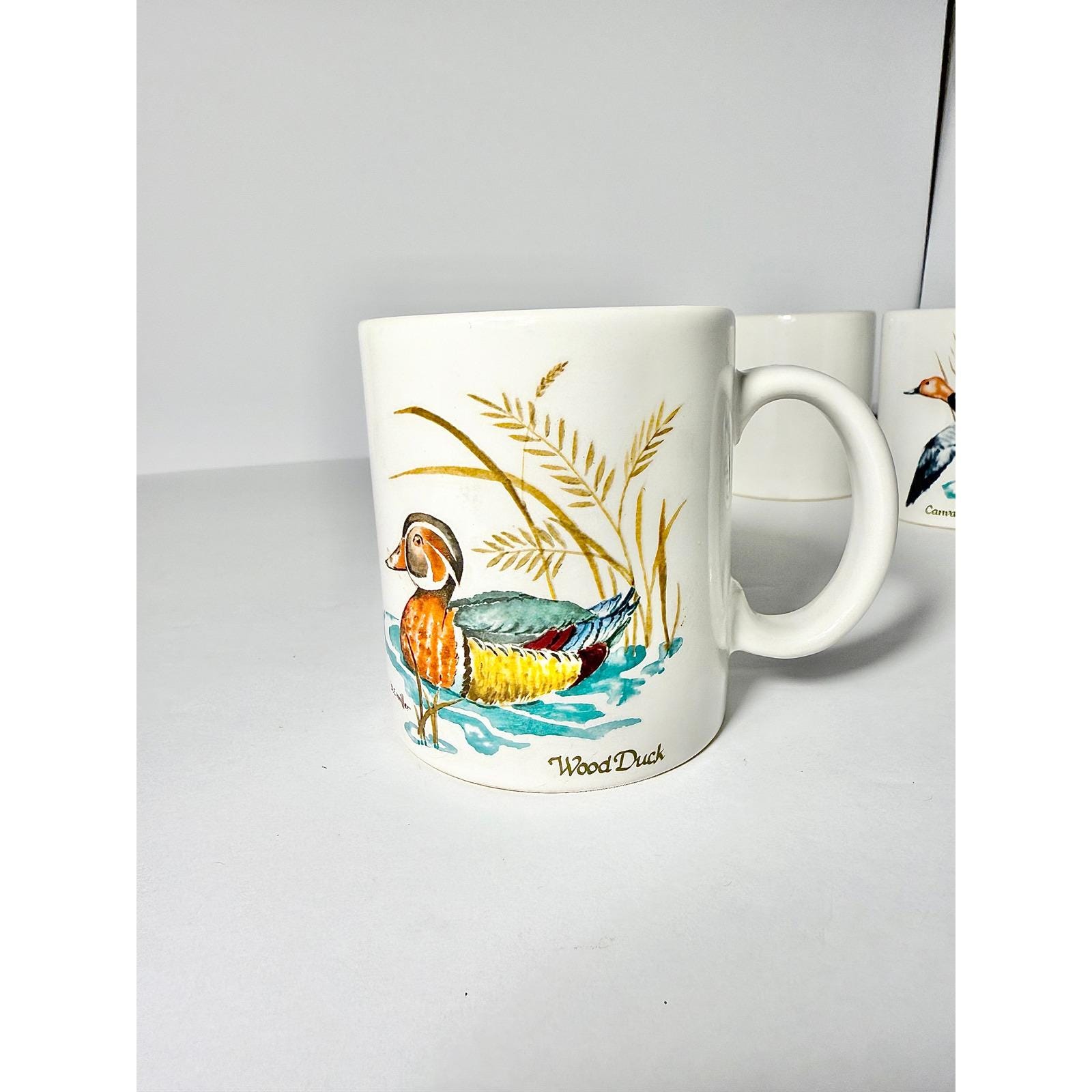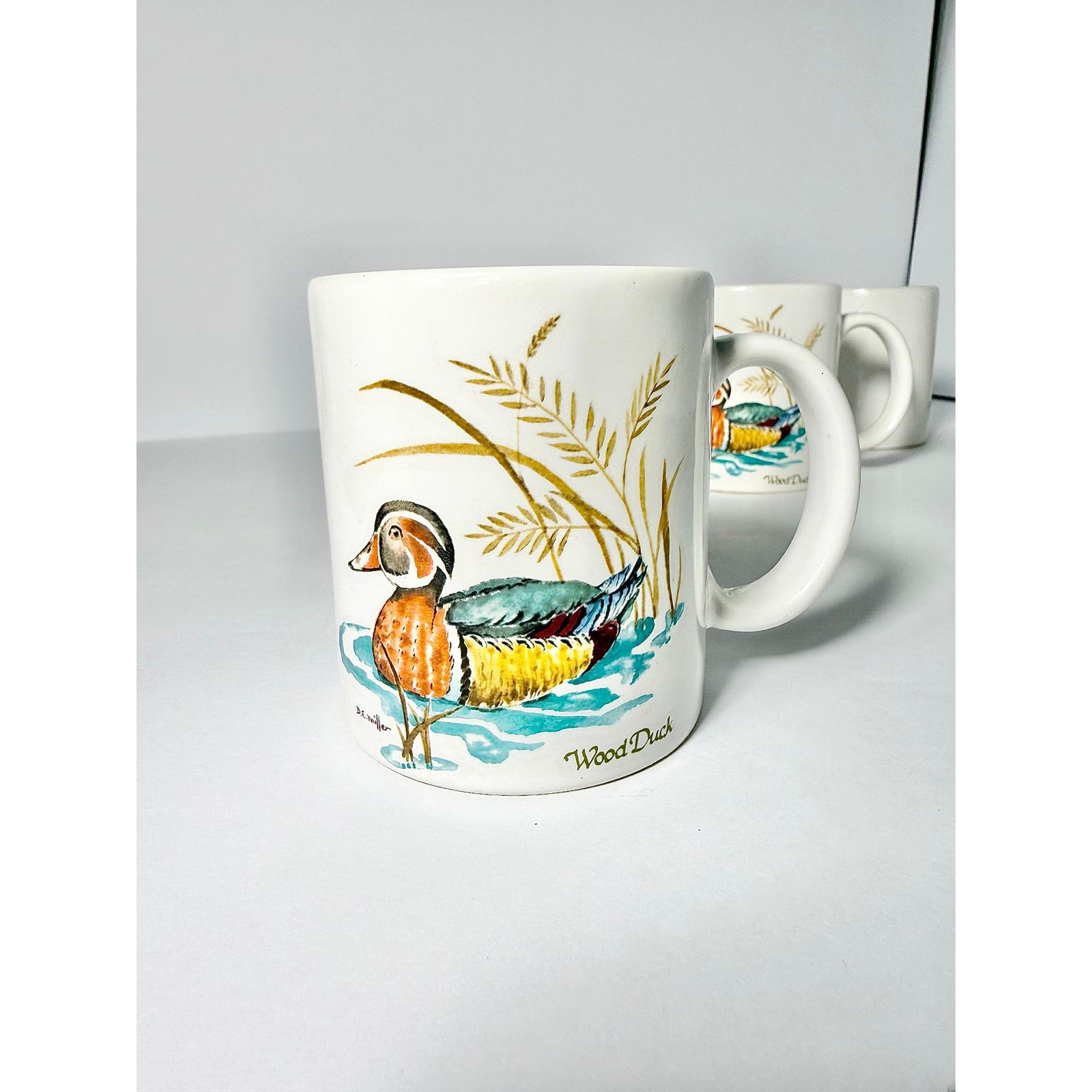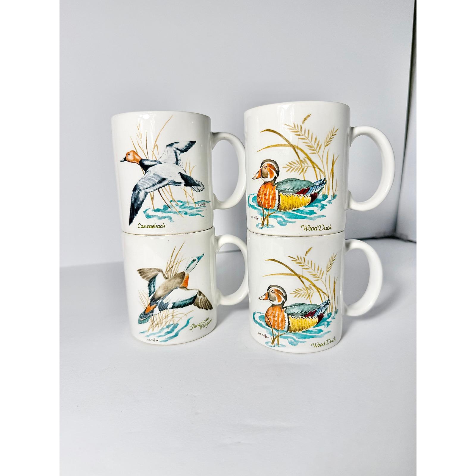 This vintage set of four ceramic mugs by D. E. Miller features beautifully detailed duck designs, making them perfect for wildlife lovers and collectors alike. The set includes a Canvasback, two Wood Ducks, and an American Widgeon, each with its own unique artwork.
