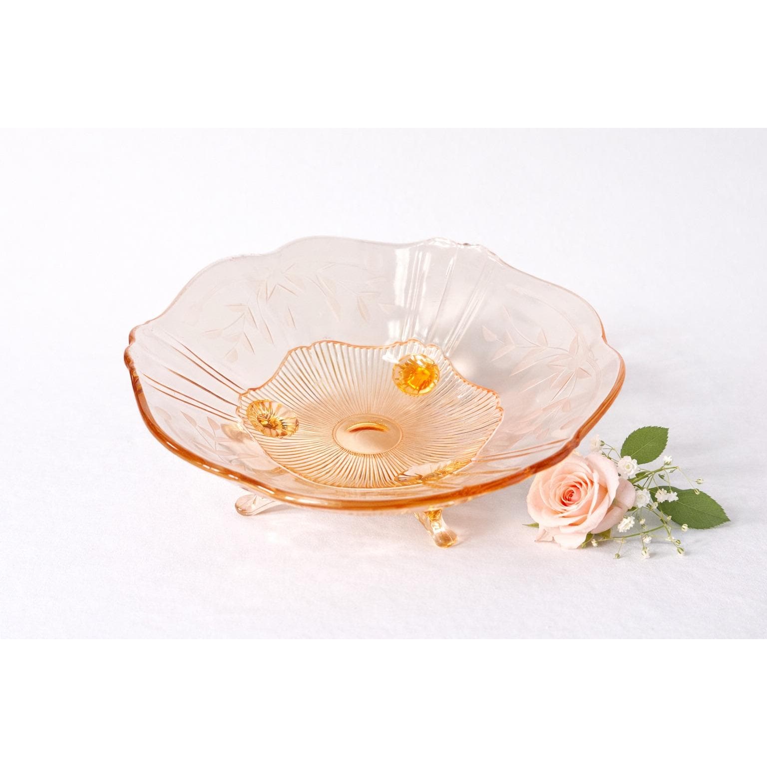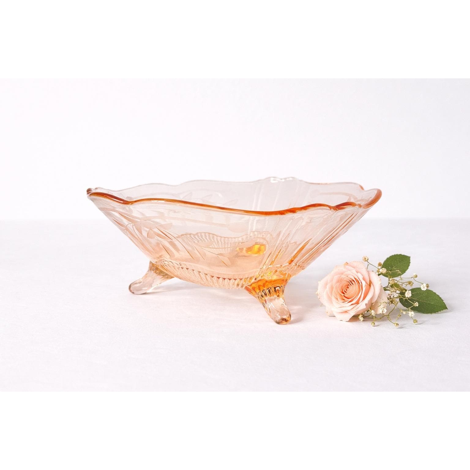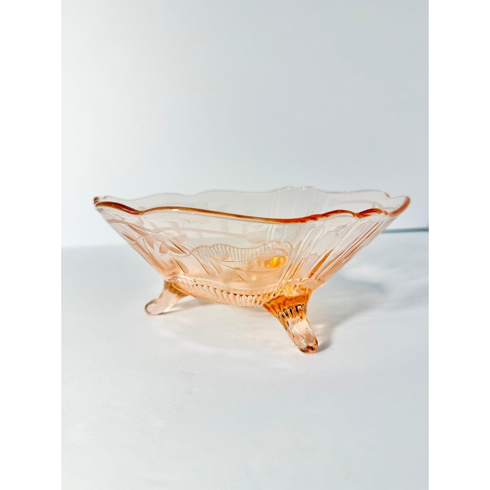 Perfect as a candy dish, trinket bowl, or decorative accent on a vanity, shelf, or table. The three-footed base adds visual interest while keeping the piece light and graceful.